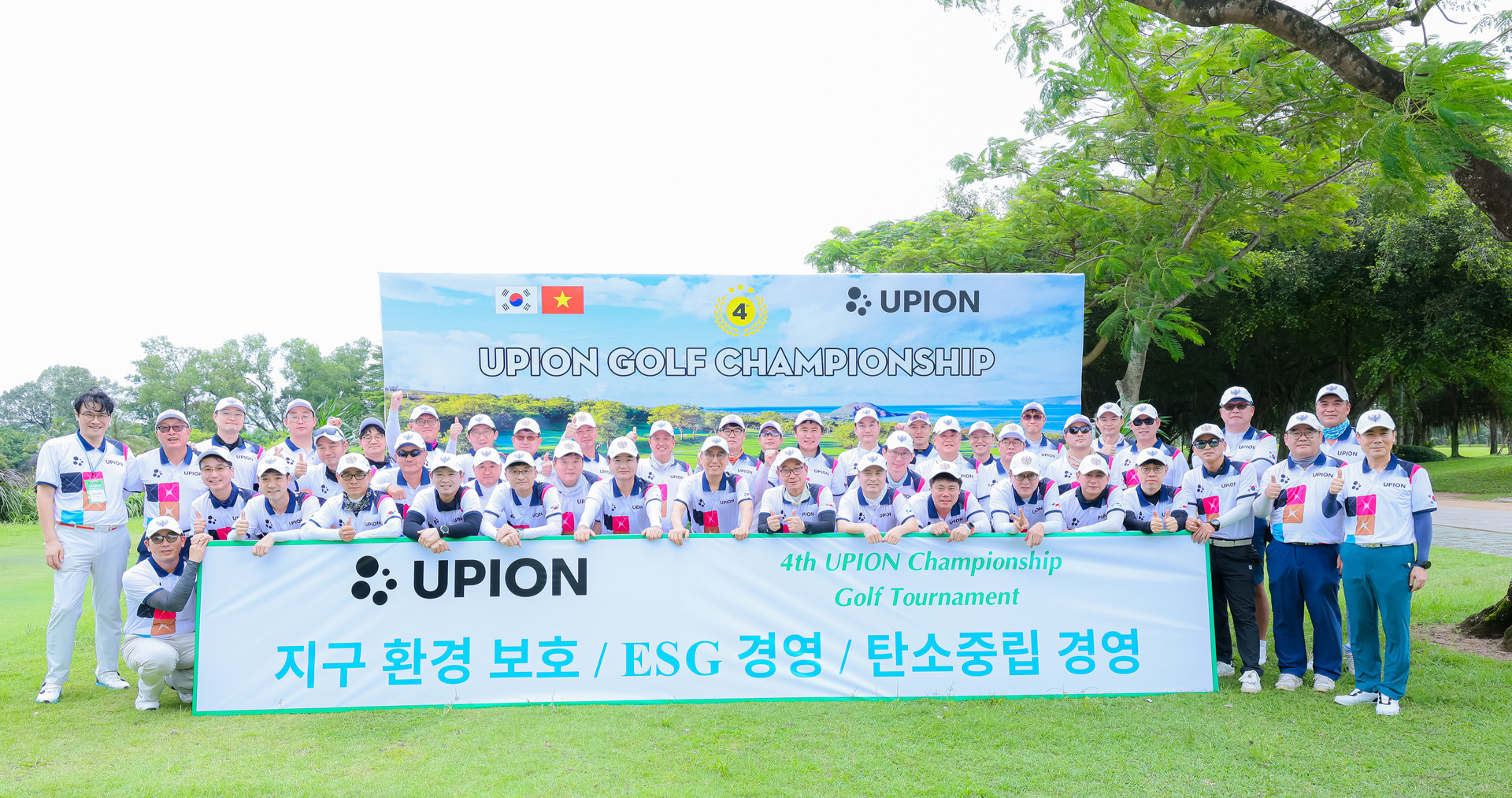 UPION 골프대회 슬로건은 "지구 환경 보호- ESG 경영 - 탄소 중립 경영 " 이며, 베트남에서 활약하는 32개 한국기업이 참여 하여 대회 의미를 나누고 전파했습니다.